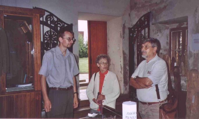 Museumsdirektor Piotr Pilewski (links) im Gespräch mit Heimatkreisleiter Johannes Ziehmann (rechts). Frau Käthe Rex (mitte) übersetzt das Gespräch.