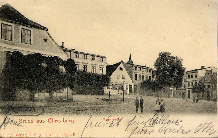 1. Die Karte "Gruß aus Christburg" wurde am 16. 5. 1903 gestempelt und an den Herrn Gutsbesitzer Adolf Zimmermann nach Altfelde geschickt.