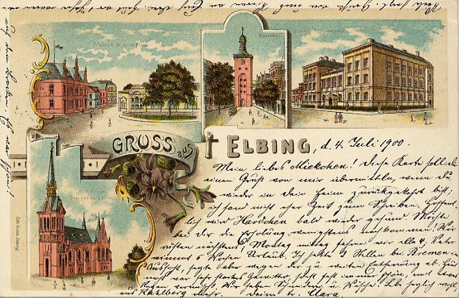 Elbing. Die Karte wurde am 4. Juli 1900 geschrieben von Clara Delion,