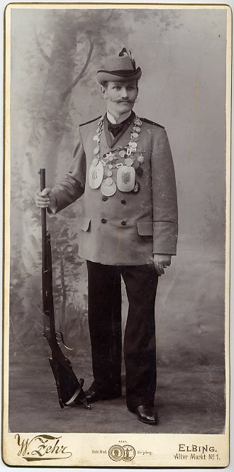 Der Schützenkönig Ein Foto des Elbinger Photographen Willibald Zehr mit einem Schützenkönig.