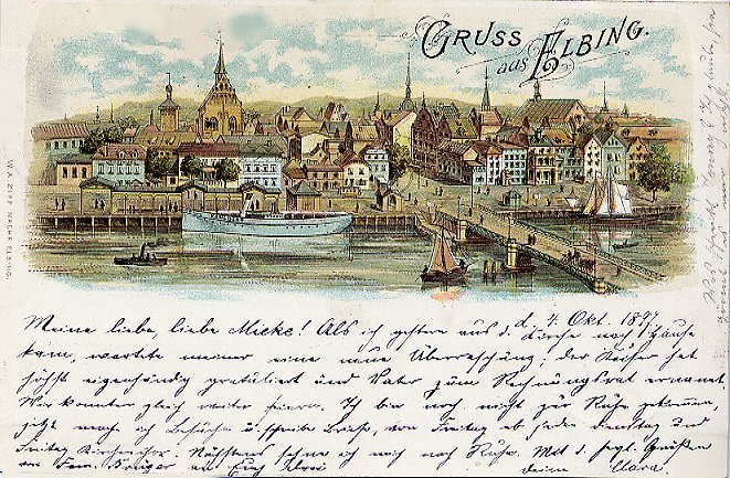 Hans-Jürgen: Elbing in alten Ansichtskarten. Würzburg: Weidlich Verlag, 2002, S. 62. Der Blick geht