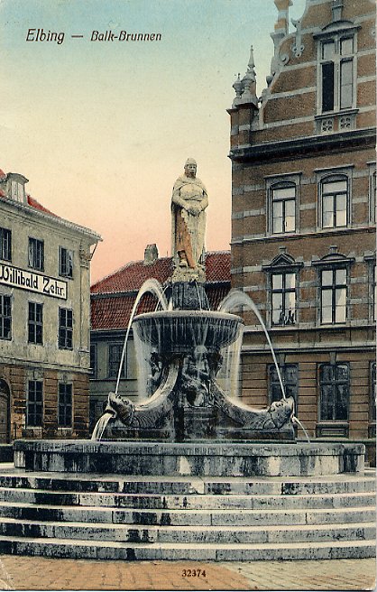 mehr) die Figur des Elbinger Stadtgründers Hermann Balk. Links sieht man
