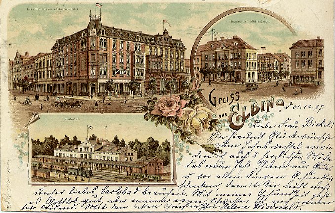 gestempelt. links unten: der Elbinger Bahnhof, links oben: Ecke Heilig Geiststraße