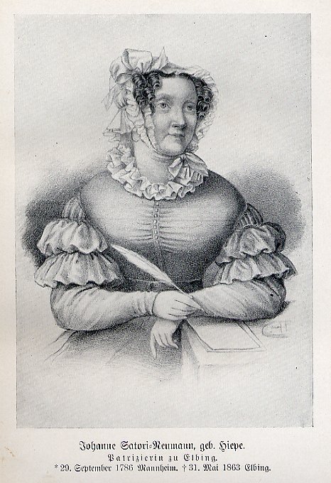 Satori-Neumann, Bruno: Elbing im Biedermeier und Vormärz. Ernstes und Heiteres aus der Guten Alten Zeit 1815-1848, Elbing: Verlag Léon Saunier’s Buchhandlung, 1933, 270 Seiten, S. 129, 158, 196