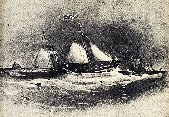 Es handelt sich hier um ein altes Gemälde des Dampfschiffes "Schwalbe", das 1840 bei Ditchburn und Marc in Blackwall bei London für  die fünf oben genannten Herren in  Elbing erbaut wurde. Das Bild wurde von dem englischen Hofmarinemaler Oswald Walter Brierly geschaffen und befand sich im Besitz des Amtsgerichtsrates Axel Grunau.