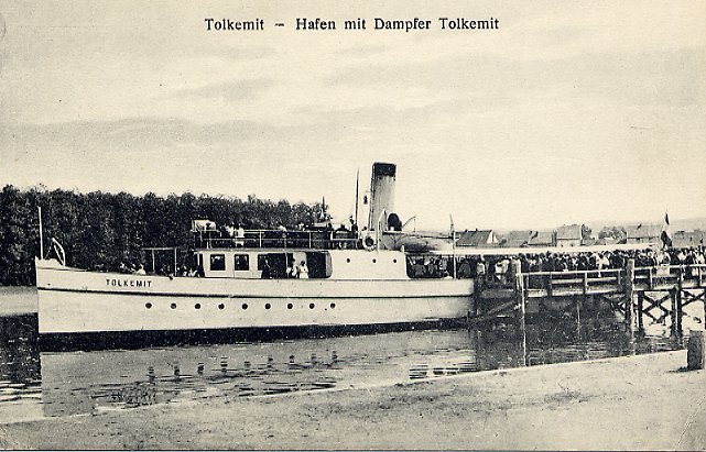 weitem Unkreis. Das Ende 1945 Am 25. Januar 1945 begann das langsame Ende des alten Tolkemit. Die Russen kamen über die Chaussee von Neukirch-Höhe in die Stadt. Vierzehn Tage dauerte der Kampf um Tolkemit. Da die Russen mit ihrem Durchbruch zum Haff die deutschen Truppen vom Westen abgeschnitten hatten, versuchten diese entlang der Haffküste den Gürtel zu sprengen. Mitten in den Kampfhandlungen lag Tolkemit. Zuerst waren nur wenige Tolkemiter über das Eis geflohen. Nachdem die Stadt abermals den Besitzer gewechselt hatte, gingen weitere Tolkemiter am 7. Februar in Richtung Wiek und dann über das Haff auf die Nehrung. Sie folgten den abziehenden deutschen Soldaten. Es sollten für längere Zeit die letzten Menschen sein, die Tolkemit verlassen konnten. Die Verbleibenden erlebten ein wahres Märtyrium. 1946/47 wurden die letzten Deutschen aus Tolkemit vertrieben.
