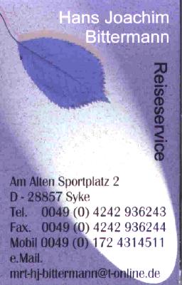 Reiseveranstalter Reiseservice Bittermann 28857 Syke. Es gelten meine allgemeinen Reisebedingungen.