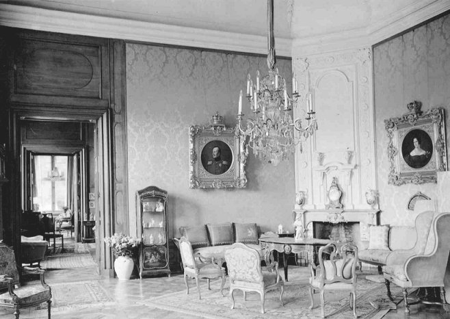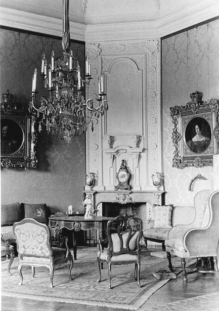 Preußen und seiner Gemahlin, Prinzessin von Hessen-Homburg. Das große ovale Stuckrelief über dem Marmorkamin stellt Luna und