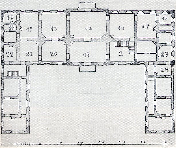 Kabinett, 19 Alte Bibliothek, 20 Neue Bibliothek, 21 Leutnantsstube, 22 Alte Komtessenstube, 23 Neue