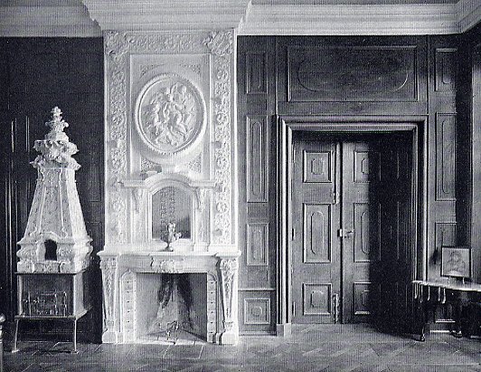 nebeneinander an der nördlichen Seitenwand. Der Kaminuntersatz aus Marmor