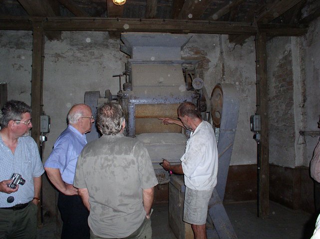 links innen - eine kleine Getreidemühle wird besichtigt.