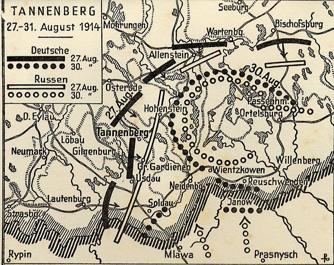 Am 31. August konnte Hindenburg seinem Kaiser und König folgendes berichten: "Euer Majestät melde ich alleruntertänigst, daß sich am gestrigen Tag der Ring um den größten Teil der russischen Armee geschlossen hat. XIII., XV. und XVIII. Armeekorps sind vernichtet. Es sind über 60 000 Gefangene, darunter die Kommandierenden Generale des XIII. und XV. Armeekorps. Die Geschütze stecken noch in den Waldungen und werden zusammenbracht. Die Kriegsbeute, im einzelnen noch nicht zu übersehen, ist außerordentlich groß. Außerhalb des Rings stehende Korps, das I. und VI. haben ebenfalls schwer gelitten. Sie setzen fluchtartig den Rückzug fort über Mlawa und Myszyniec."