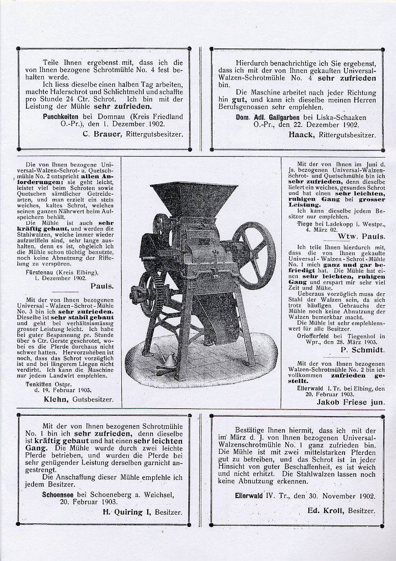 Häckselmaschinen, Schrotmühlen, usw. trat die Fabrikation von