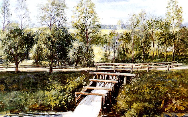 Waldkathen oder vom Bahnhof Gunthen kam. Links im Bild die Schleuse, im