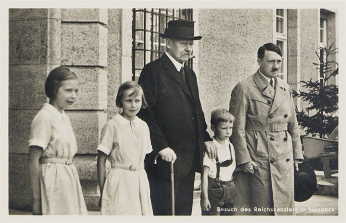 Bild 40: Besuch des Reichskanzlers bei Reichspräsident von Hindenburg  in Neudeck 1933. Die drei Kinder sind Hindenburgs Enkel.
