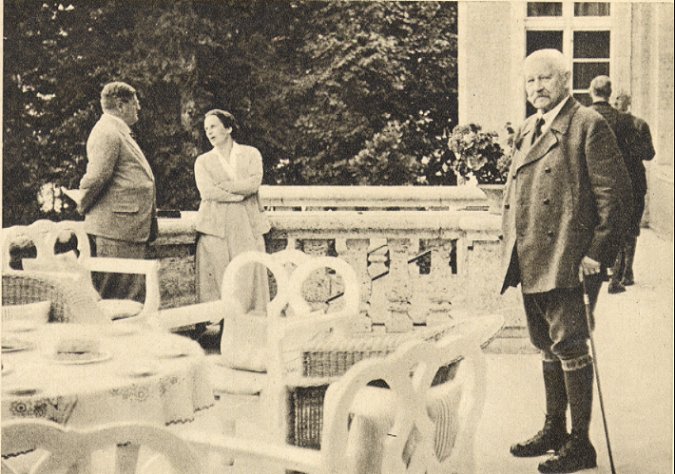 Bild 42: Hindenburg auf der Terrasse von Neudeck. Ein persönlicher Zug war die einfache, aber herzliche Gastlichkeit des alten Herrn, zumal wenn er Menschen bei sich sah, die er liebte und achtete.