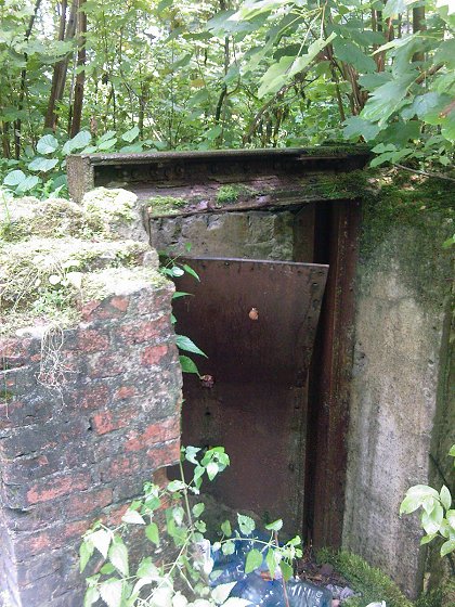 Vor der verbogenen Kellertür hat jemand seinen Müll entsorgt.