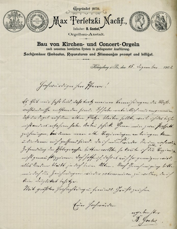 Orgelbauanstalt. 1902 übernahm Bruno Goebel die Firma von Max Terletzki