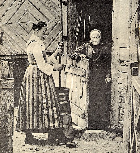 Alltagskleidung beim Buttern. (Elbinger Nachrichten, Uelzen, August 1982,