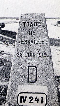 Bild 08 Dreiländerstein an der Weichsel. Er markierte von 1919-1939 die Stelle, an der gemäß dem Friedensvertrag von Versailles vom 28. Juni 1919 die Grenzen des Deutschen Reiches, Provinz Ostpreußen (D), der Freien Stadt Danzig (F.D) und der Republik Polen (P) aneinanderstießen.