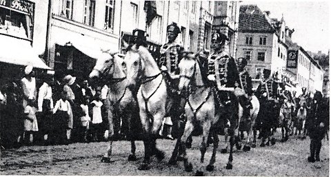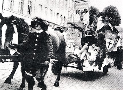 Die einzelnen Gruppen erinnerten auch an die Geschichte, indem sie z. B. als Ordensritter oder als Totenkopfhusaren auftraten und verwiesen auf die Grenzziehung von Versailles. Da wurden Grenzsteine gezeigt, das Westpreußenkreuz von Weißenburg und z. B. auf einem Wagen ein Großmodell der Danziger Marienkirche.