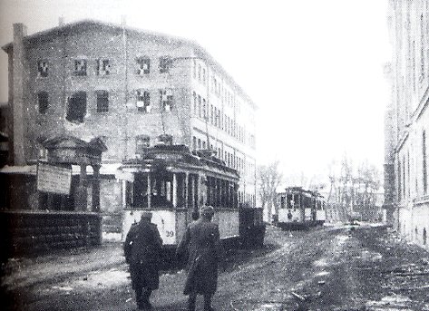 Bild Nr. 16: Nach den Kämpfen: Eine umgeleitete Straßenbahn der Linie 1 in