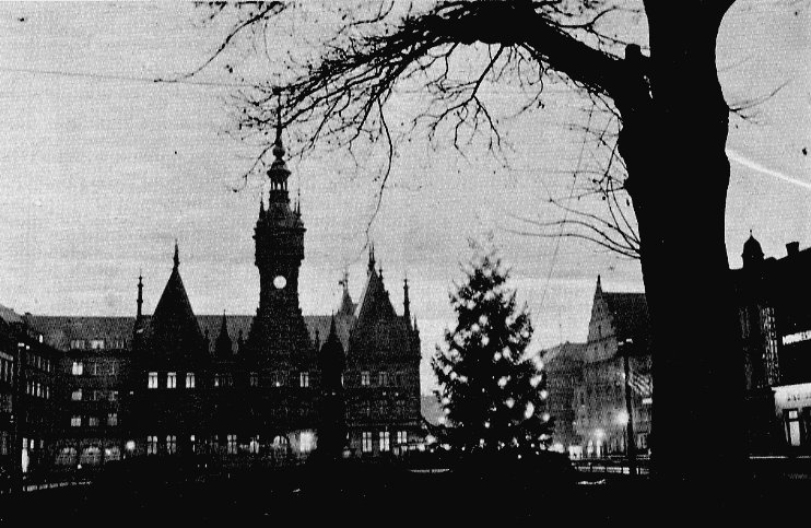 dem Gejohle erstrahlte im hellen Lichterglanz der Weihnachtsbaum auf der Rasenfläche