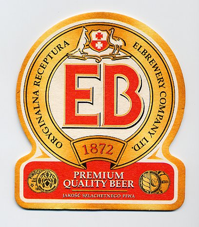 heutigen Polen wird für Elbinger Bier geworben. Die beiden Buchstaben "EB"