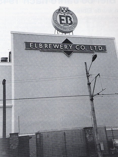 Buchstaben befindet sich in einem Rund der Firmenname ELBREWERY CO Ltd.