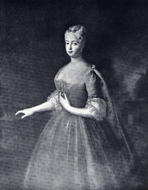 hätte sie "sieben Hündchen im Bett". Bild 11: Wilhelmine, Prinzessin von Preußen, vor ihrer Vermählung mit dem Erbprinzen von Bayreuth, gemalt von Antoine Pesne um 1728.