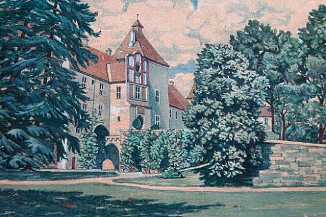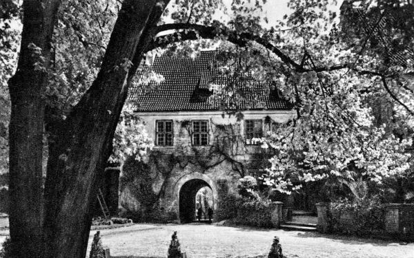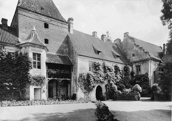 "Hof" mit dem Eingang zur Bibliothek und zur Halle. Vom Hof aus gelangte man in die Zimmer und