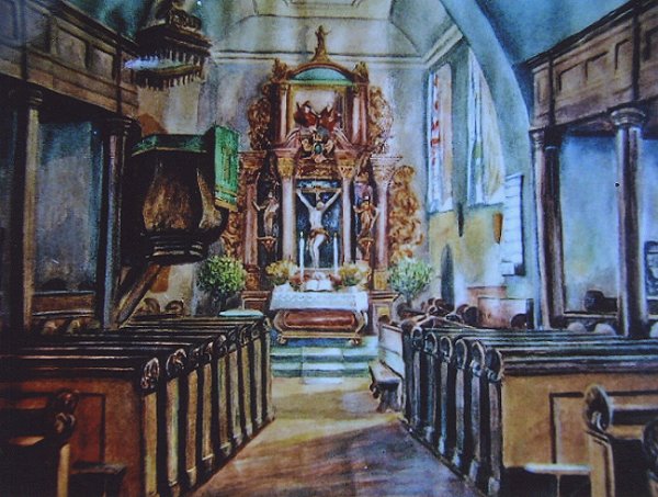 10. Ev. Kirche - Innenansicht - 1944 gemalt von Erna