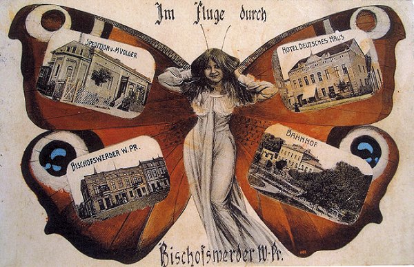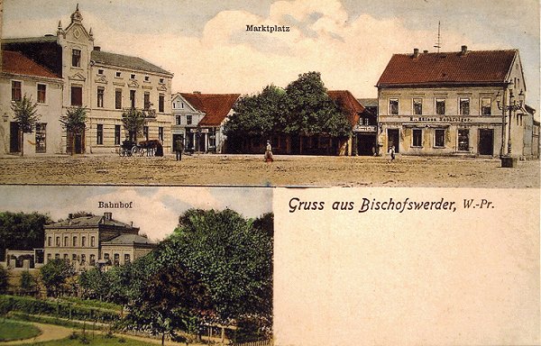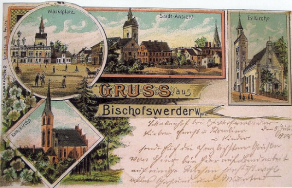 Gruß aus Bischofswerder von 1908 mit folgenden Motiven:
