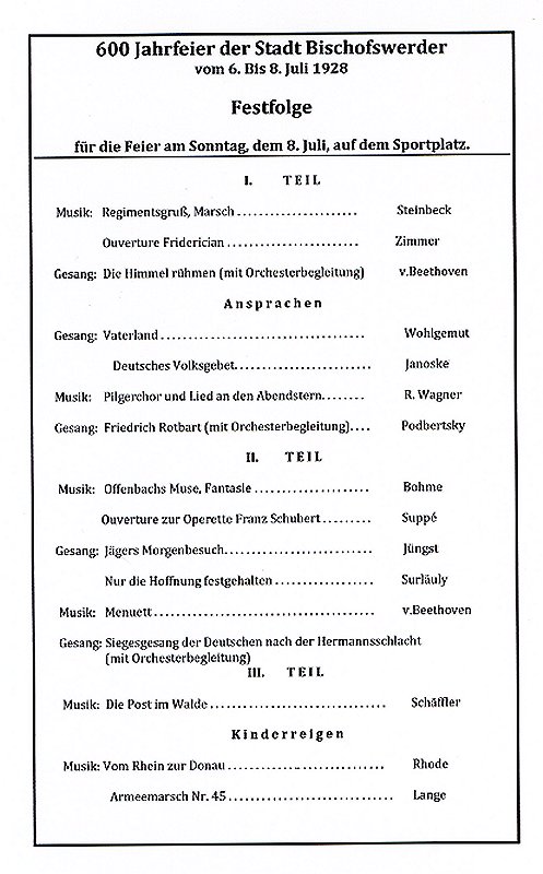 Festprogramm vom 8. Juli auf dem Sportplatz