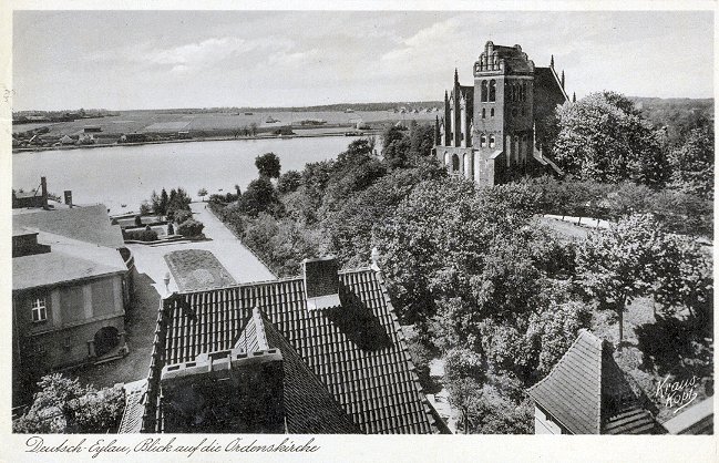 Ordenskirche mit der Schule und rechts oben den Städtischen
