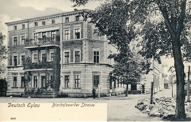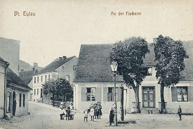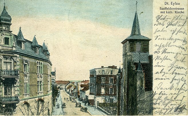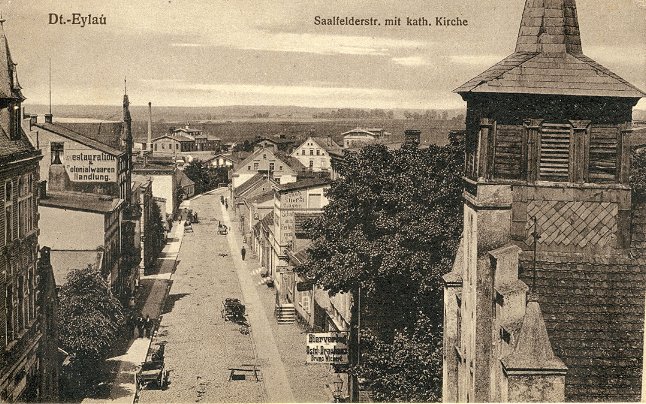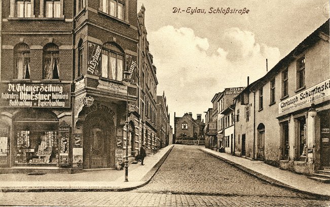 Links ist das Gebäude der Dt.-Eylauer Zeitung (1922),