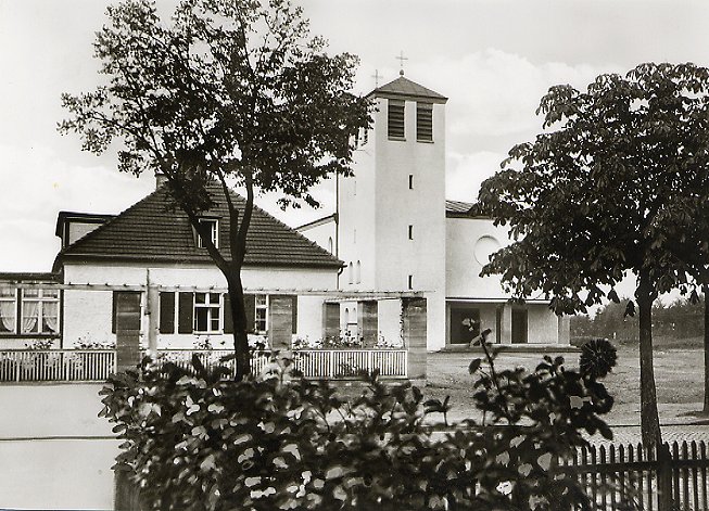 Bahnübergang und dem katholischen Friedhof gefunden hatte, wurde die neue katholische Pfarrkirche St. Marien