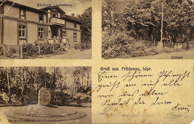 Bäckerei Lindemann, Schule und Heldendenkmal in Frödenau