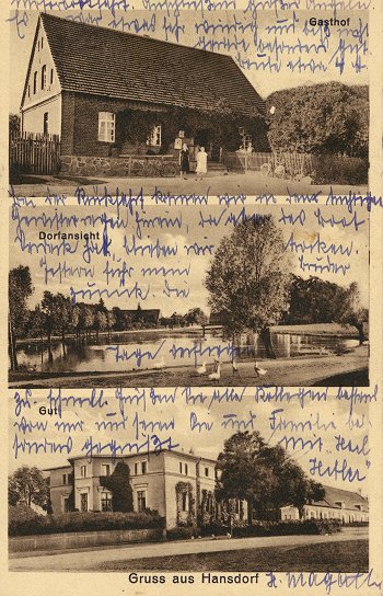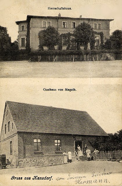 Gemeinde Hansdorf hatte vor dem 2. Weltkrieg 343 Einwohner. Dorf, Gut und