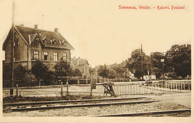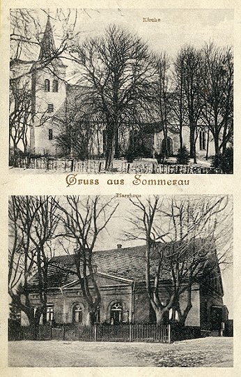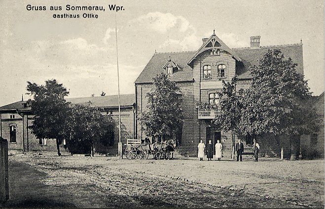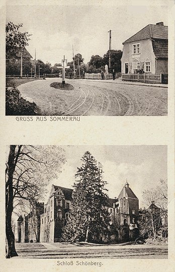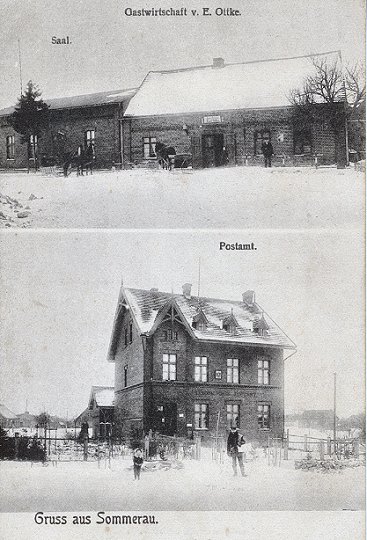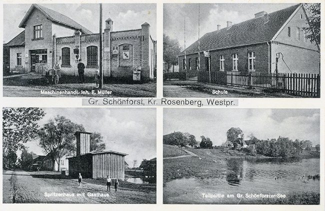 4. Groß Schönforst - Maschinenhandlung von E. Müller, Schule, Spritzenhaus mit Gasthaus und eine Teilpartie am Gr. Schönforster See (1938) Sommerau / Zabrowo Das Dorf Sommerau war seit 1375 ein