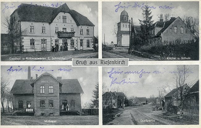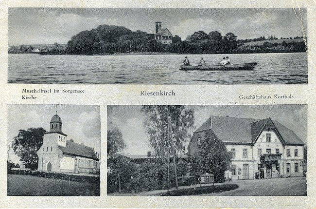 2. Riesenkirch - Muschelinsel im Sorgensee, Kirche und das Geschäftshaus Korthals (1940)