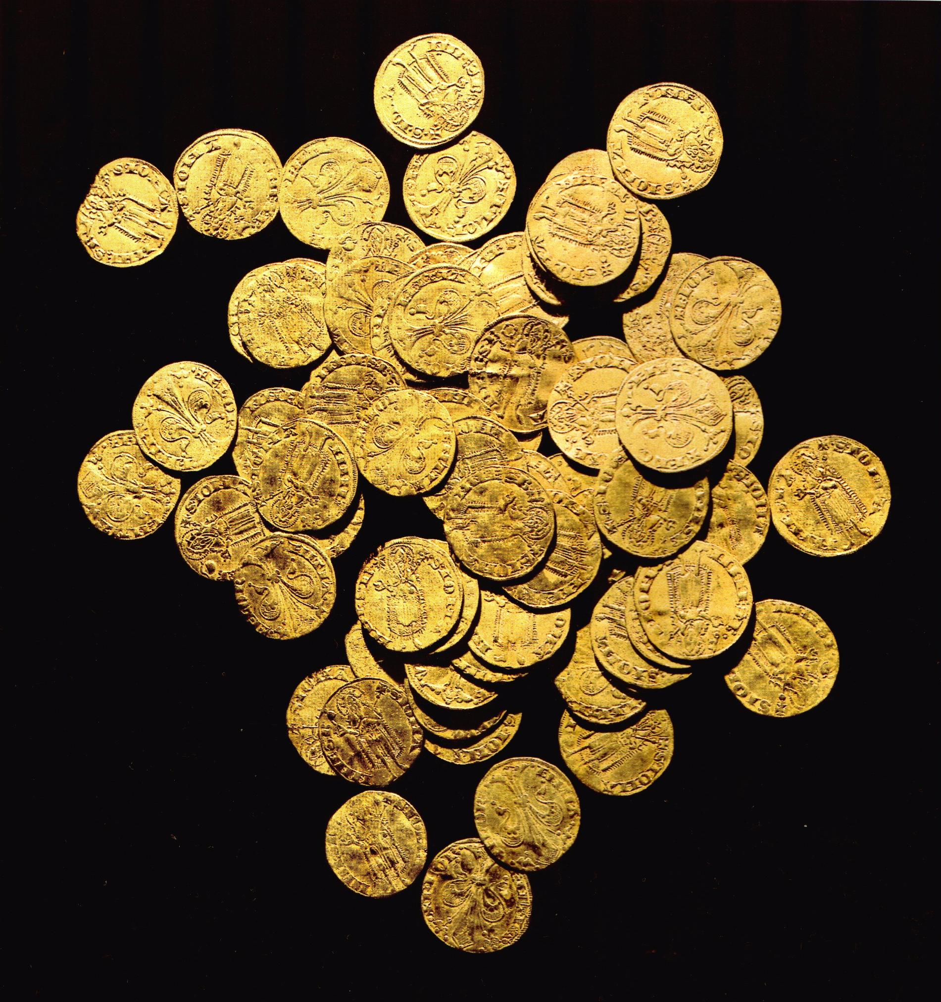 Do najstarszych tego typu znalezisk należą monety rzymskie przywożone przez kupców pośredniczących w handlu pomiędzy tymi ziemiami a prowincjami cesarstwa rzymskiego. W 1893 r. w okolicy Szymbarka znaleziono 28 takich monet, które graf Finkenstein przekazał do Prowinzial Museum w Gdańsku. Znane są także skarby średniowieczne. W Mózgowie na ten przykład odkryto ok. 2000 denarów, w tym bite przez: Mieszka I, Bolesława Chrobrego, cesarza niemieckiego, królów angielskich i norweskich, a nawet monety arabskie. Skarb ten został ukryty po 1010 r. W okolicach Łążyna w 1888 r. rolnik wyorał gliniane naczynie, w którym znajdowało się obok licznych ozdób 1118 monet: niemieckich, angielskich, polskich i 20 połówek monet arabskich. Arabskie monety znajdowano także w okolicy Zalewa. W samym mieście w 1991 r. natrafiono w fundamentach średniowiecznej kamienicy na skarb złotych florenów (mogło być ich około 200!) pochodzących z Florencji, francuskiego Delfinatu Viennois (księstwo następcy tronu Francji), a także mennicy przebywającego wówczas w niewoli w Awinionie papieża Jana XXII. Do 2000 r. zdołano odzyskać 88 sztuk, wybitych w latach 1252-1334 monet.