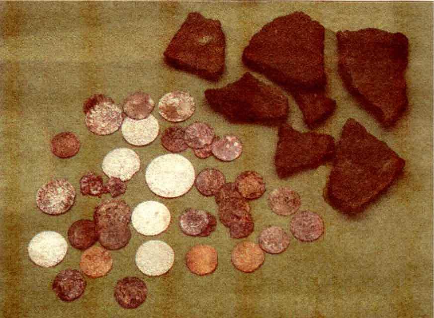 Wśród zabytków oddanych Muzeum Warmii i Mazur w Olsztynie znajdują się monety polskie, pruskie i szwedzkie. Z mennicy króla polskiego Zygmunta III pochodzi 12 monet. Odzyskano także 5 monet księcia pruskiego Jerzego Wilhelma, 33 szwedzkie: 13 króla Gustawa Adolfa i 20 królowej Krystyny. Pozostałe 3 z uwagi na złe zachowanie nie zostały zidentyfikowane.